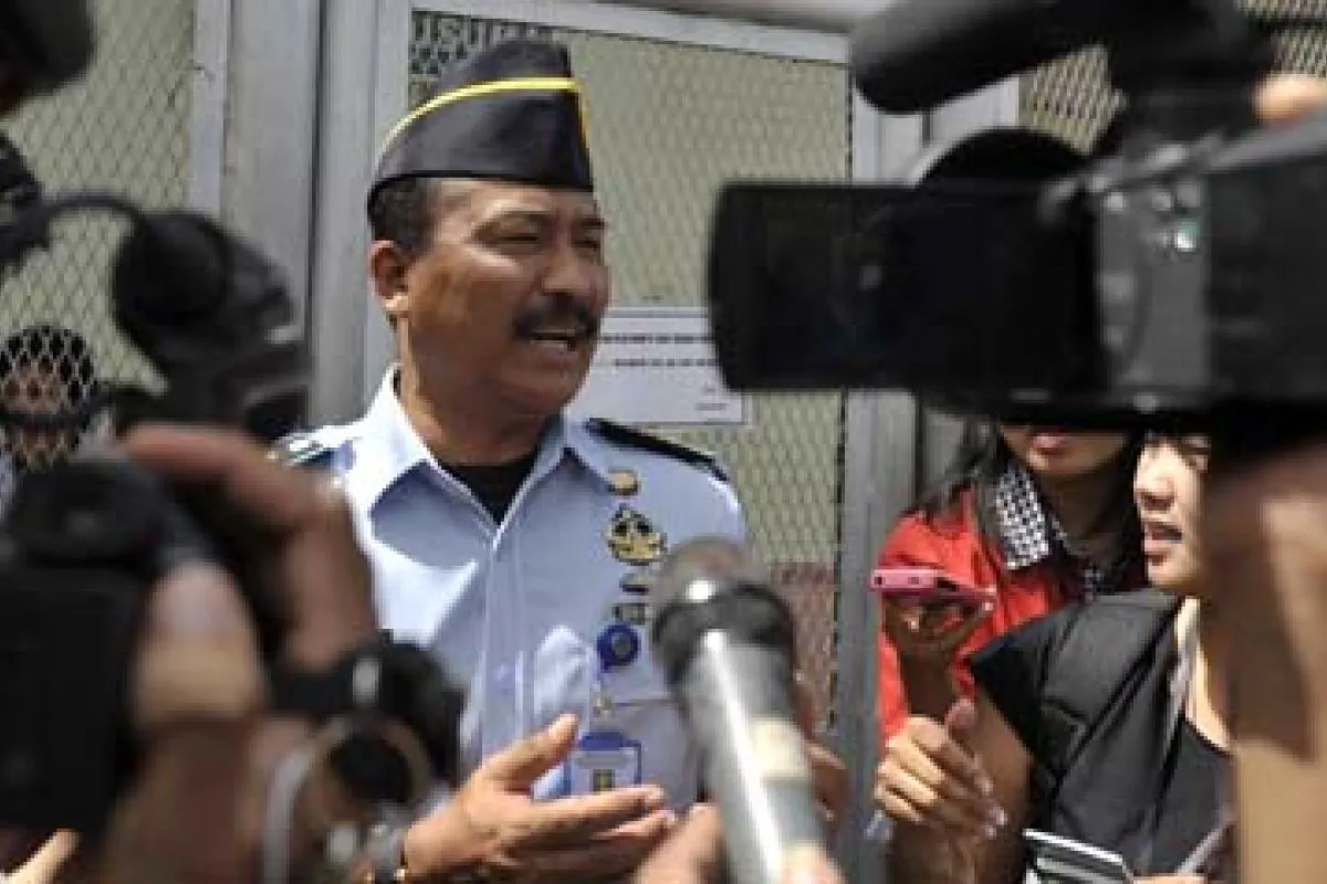 Denpasar (Antara Bali) - Kepala Lembaga Pemasyarakatan (Lapas) Kelas II-A Kerobokan Denpasar, Gusti Ngurah Wiratna memberi keterangan tentang usulan remisi bagi warga Australia terpidana 20 tahun penjara karena kasus 4,2 Kg mariyuana, Schapelle Leigh Corby di Lapas Kerobokan, Denpasar, Bali, Senin (6/8). Warga Australia yang sebelumnya telah memperoleh grasi dari Presiden RI, saat ini diusulkan kembali untuk mendapatkan remisi maksimal 6 bulan terkait peringatan HUT ke-67 Proklamasi Kemerdekaan RI. FOTO ANTARA/Nyoman Budhiana/nym/2012.