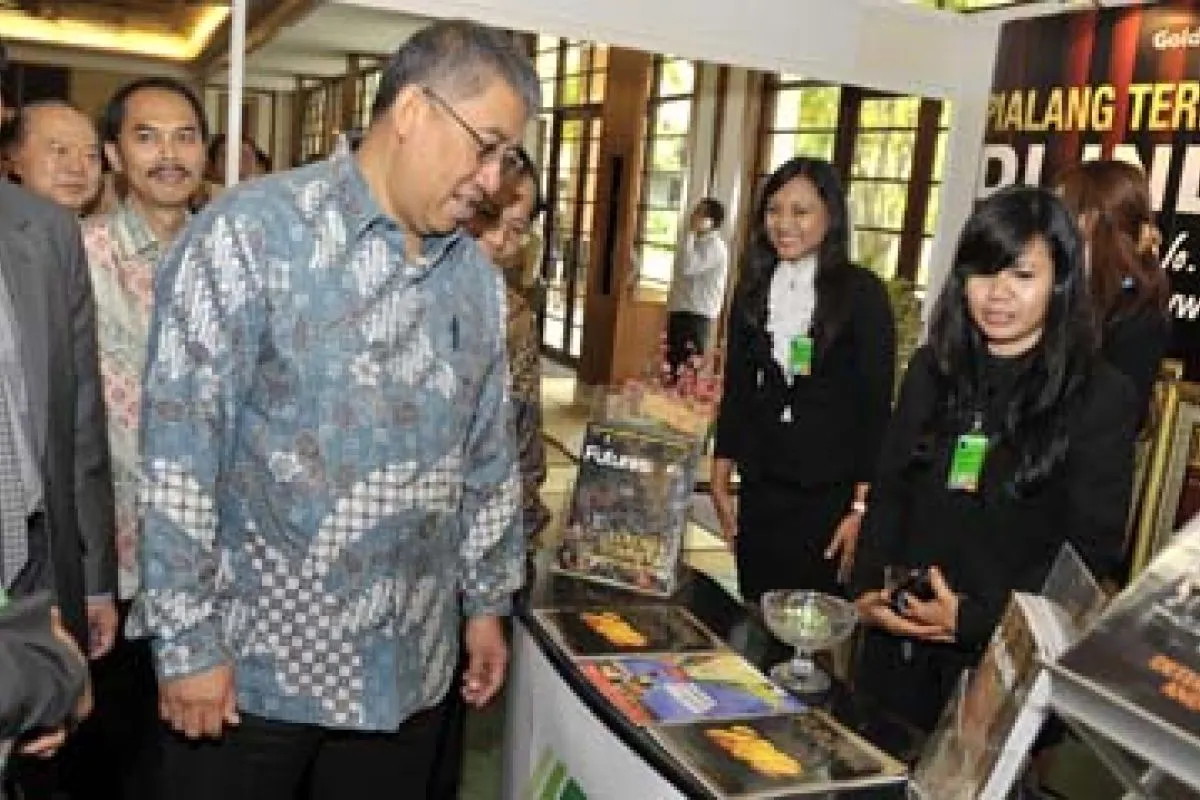Nusa Dua (Antara Bali) - Wakil Menteri Perdagangan, Bayu Krisnamurthi (tengah) meninjau salah satu stand pameran sebuah perusahaan pialang saat menghadiri Seminar Nasional Perdagangan Berjangka Komoditi di Nusa Dua, Bali, Selasa (13/11). Kegiatan dua hari itu dihadiri sekitar 400 peserta dari berbagai pelaku usaha dan instansi bidang perdagangan berjangka komoditi di Indonesia untuk mendiskusikan berbagai hal terutama peranan mereka dalam penguatan perekonomian daerah dan nasional. FOTO ANTARA/Nyoman Budhiana/nym/2012.