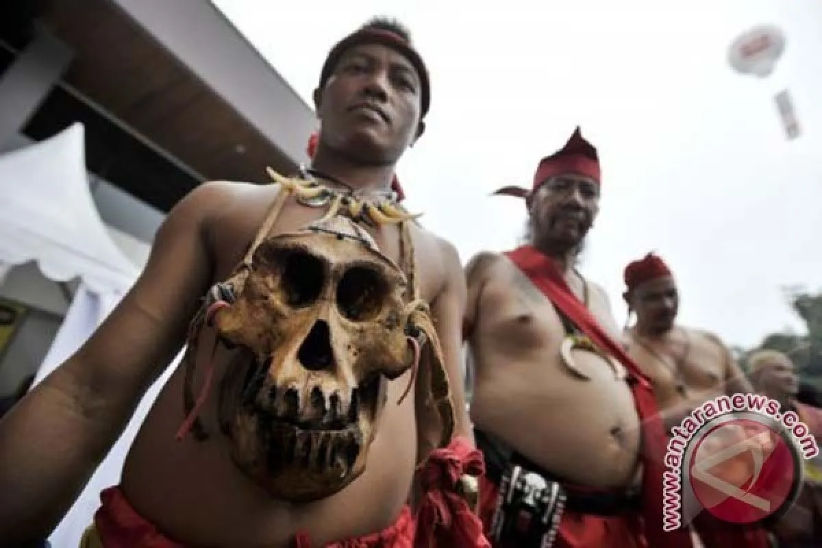 1Jakarta (Antara Bali) - Sejumlah pemuda berbusana tradisional Dayak saat Pekan Budaya Dayak 2013 di Istora Senayan, Jakarta, Sabtu (27/4). Ajang promosi budaya yang berlangsung hingga 30 April 2013 tersebut menampilkan berbagai produk dan potensi Kalimantan, khususnya budaya Suku Dayak. FOTO ANTARA/Ismar Patrizki/nym/2013.