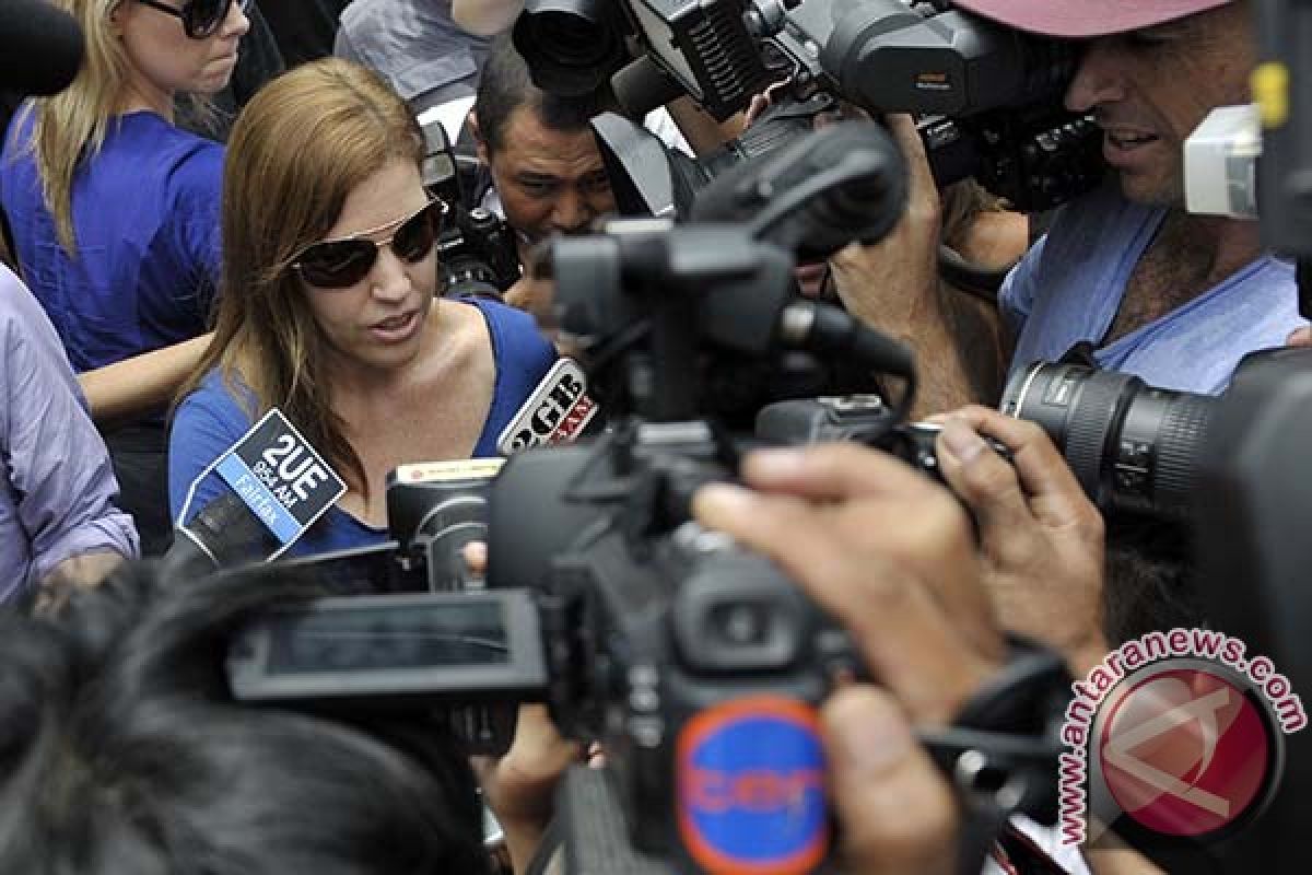 1Keluarga Schapelle Corby yaitu warga Australia terpidana 20 tahun penjara dalam kasus mariyuana, Mercedes Corby (kiri) menjawab pertanyaan sejumlah wartawan Australia saat membesuk Schapelle Corby di Lapas Kerobokan, Denpasar, Bali, Jumat (7/2). Schapelle Corby rencananya akan mendapatkan kebebasan bersyarat dari pemerintah Indonesia setelah hampir 10 tahun menjalani hukuman penjara atas kasu 4,2 Kg mariyuana pada tahun 2004. ANTARA FOTO/Nyoman Budhiana/nym/2014.