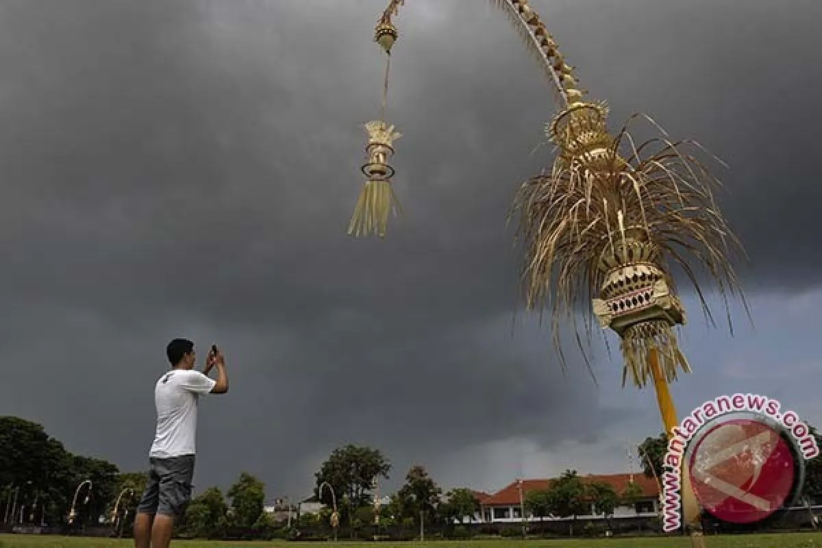 1Seorang warga memotret saat awan hujan melintasi Kota Denpasar, Bali, Senin (3/3). Badan Meteorologi dan Geofisika memperkirakan, di Bali berpotensi terjadinya cuaca tidak menentu yaitu hujan yang disertai kilat/petir dan angin kencang berdurasi singkat dalam beberapa hari ke depan. ANTARA FOTO/Nyoman Budhiana/i018/2014.