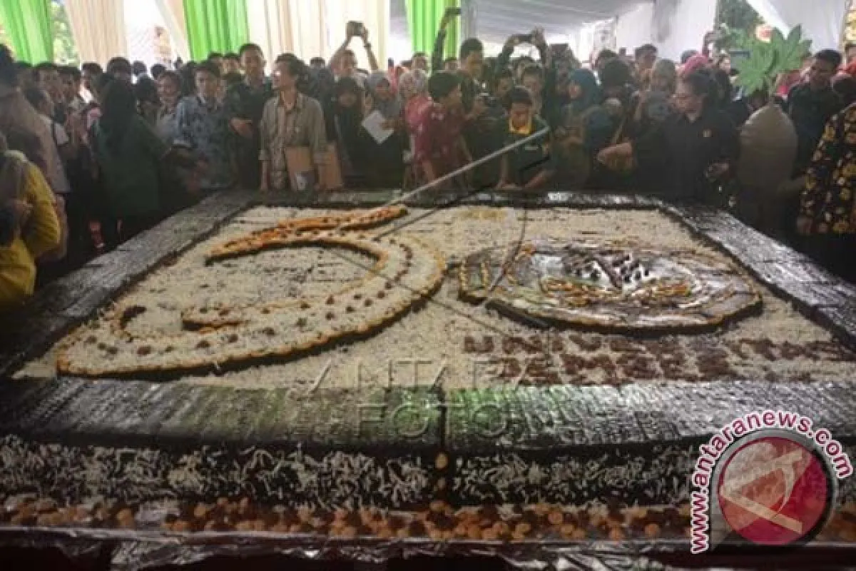 1Sejumlah penonton mengamati kue Brownies untuk memecahkan rekor MURI (Museum Rekor Dunia Indonesia) di Universitas Negeri Jember (Unej), Jawa Timur, Kamis (23/10). Kue brownies ukuran 310cm x 310cm x 20cm terbuat dari tepung singkong Modified Cassava Flour (MOCAF) memecahkan rekor baru Muri dalam rangka hari jadi ke-50 tahun UNEJ. ANTARA FOTO/Seno/wdy/14.