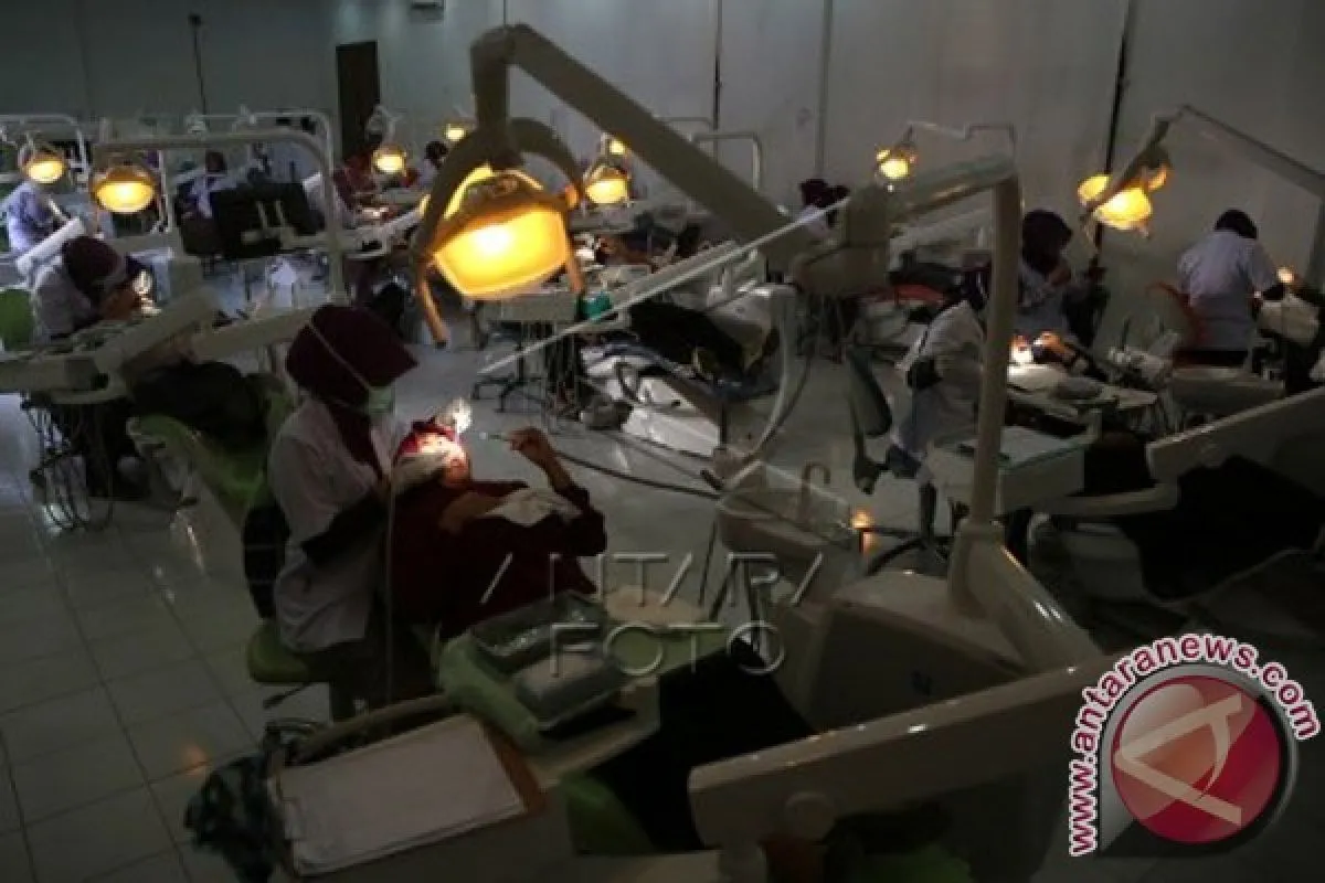1Petugas medis melayani warga yang memeriksa kesehatan gigi gratis dalam rangka Bulan Kesehatan Gigi Nasional (BKGN) di Banda Aceh, Aceh, Rabu (18/11). BKGN ke-VI dilaksanakan Fakultas Kedokteran Gigi (FKG) Unsyiah bersama Unilever, Persatuan Dokter Gigi Indonesia (PDGI) dan Asosiasi Fakultas Kedokteran Gigi Indonesia (AFDOKGI) bertujuan untuk mengedukasi serta membiasakan masyarakat merawat kesehatan gigi dengan memeriksakan diri ke dokter minimal setiap enam bulan sekali. ANTARA FOTO/Irwansyah Putra/wdy/15.