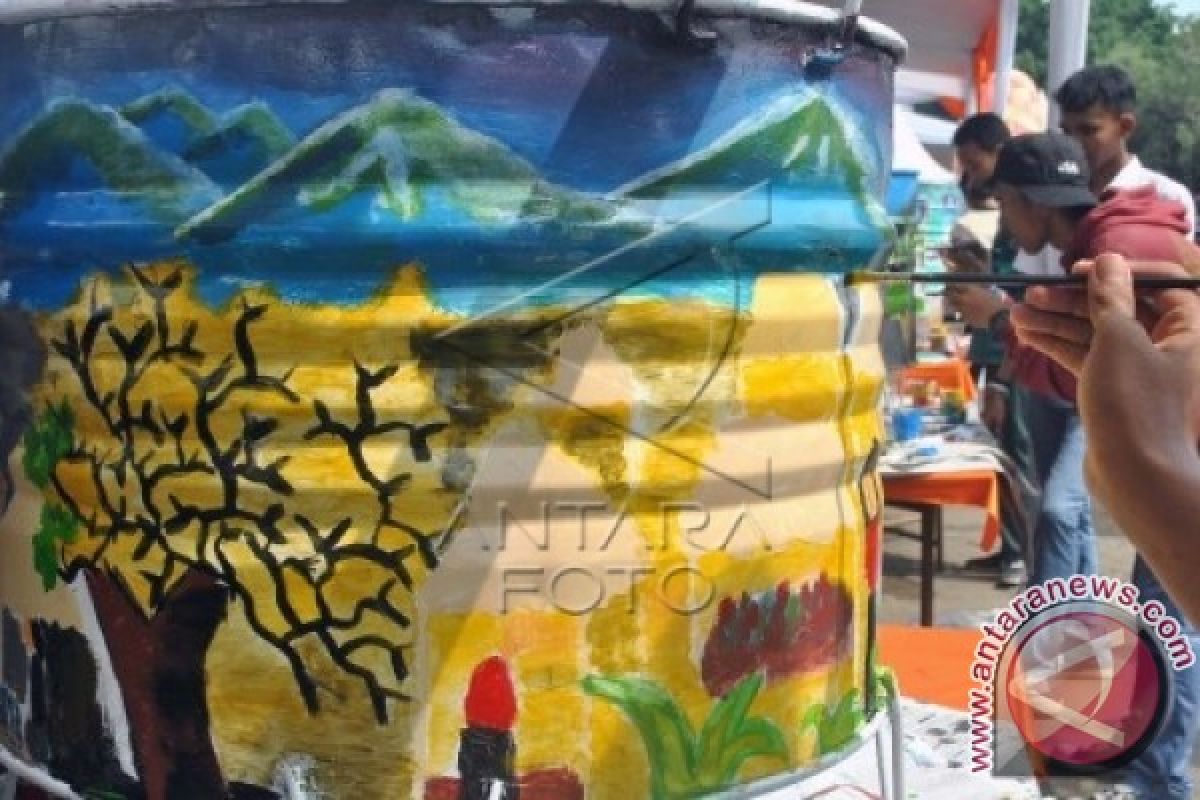 1Sejumlah siswa SMA dan SMK di Bogor mengikuti lomba melukis tong sampah dalam Festival Pasar Rakyat di Pasar Kebon Kembang, Kota Bogor, Jawa Barat, Sabtu (21/11). Kegiatan dalam rangka kampanye nasional Jelajah Pasar Rakyat Nusantara tersebut bertujuan untuk membangun kreativitas siswa dan kesadaran warga untuk membuang sampah pada tempatnya sehingga pasar tradisional menjadi bersih. ANTARA FOTO/Arif Firmansyah/wdy/15.