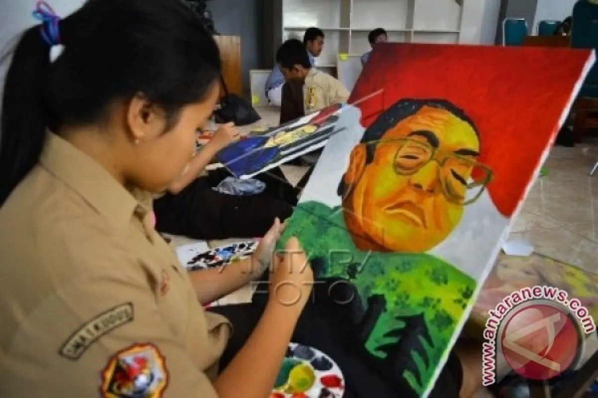 1Peserta menyelesaikan lukisan bergambar wajah Gusdur saat mengikuti lomba melukis bertema 'Lukisan Gusdur' dalam rangka memperingati Haul Gusdur ke IV di Kudus, Jawa Tengah, Sabtu (30/1). Kegiatan melukis yang melibatkan seluruh perwakilan dari pelajar Sekolah Menengah Atas (SMA) atau yang sederajat di wilayah tersebut untuk memperingati wafatnya Gusdur serta mengenang jasa-jasa, karomah, akhlaq, dan keutamaan tokoh Gusdur. ANTARA FOTO/Yusuf Nugroho/wdy/16.
