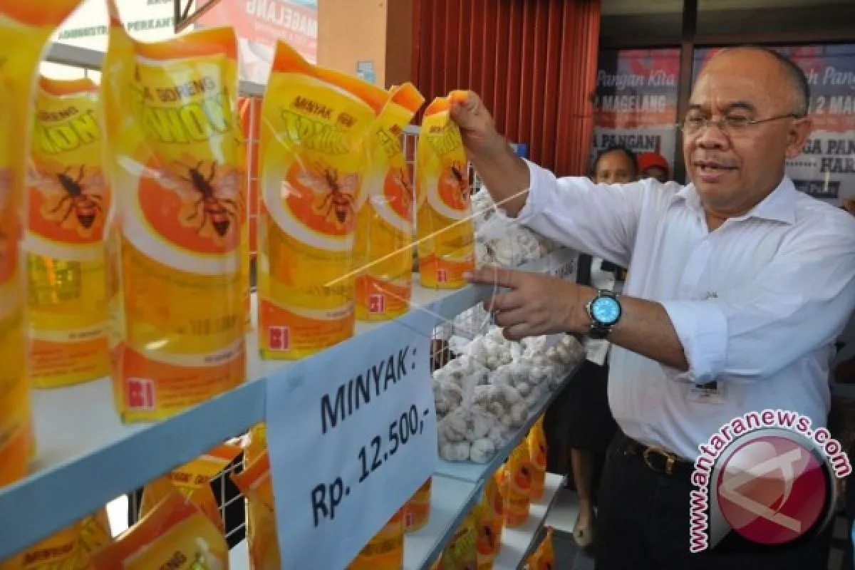 1Direktur SDM Perum Bulog Wahyu Suparyono melihat berbagai komoditas bahan pokok saat meresmikan Rumah Pangan Kita (RPK) di SMK Negeri 2 Magelang, Jateng, Rabu (19/10). Perum Bulog menargetkan 50.000 RPK di seluruh Indonesia yang bertujuan untuk menstabilkan harga kebutuhan pokok di masyarakat terutama beras, gula pasir, minyak dan tepung. ANTARA FOTO/Anis Efizudin/wdy/16