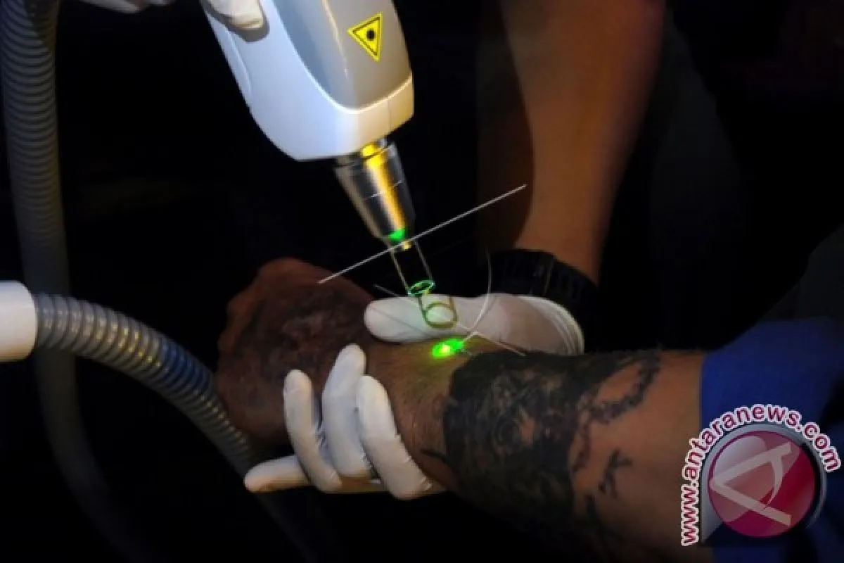 1Petugas melakukan proses tahapan Program Penghapusan Tato (PPT) kepada salah satu peserta di Bandung, Jawa Barat, Kamis (14/9). Kegiatan yang digelar Komunitas Dakwah dan Sosial (Kodas) bersama Islamic Medical Service (IMS), Gerak Bareng Community (GBC) dan Punk Muslim itu guna membantu dan memfasilitasi seseorang yang berkeinginan melakukan proses 'Hijrah' dan beribadah dengan baik. ANTARA FOTO/Fahrul Jayadiputra/wdy/2017.