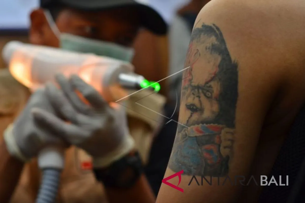 Komunitas Dakwah dan Sosial (Kodas) menghapus tato peserta pada kegiatan hapus tato gratis sahabat hijrah Tasikmalaya di Mesjid Agung Tasikmalaya, Jawa Barat, Minggu (25/2). Program pelayanan hapus tato gratis tersebut diikuti sekitar 20 peserta. ANT