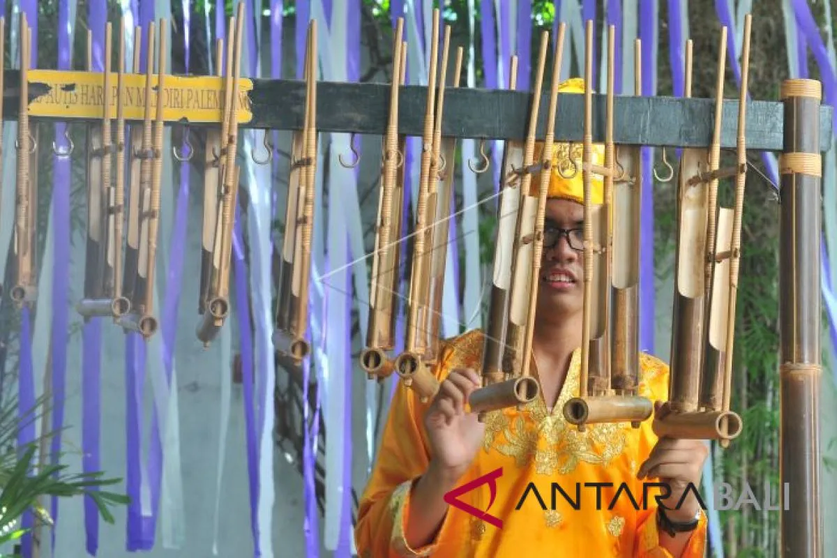 Siswa penyandang autis unjuk kebolehan memainkan alat musik tradisional pada peringatan Hari Kesadaran Autisme Sedunia di halaman Sekolah Luar Biasa (SLB) Bina Autis Mandiri di Palembang, Sumatra Selatan, Sabtu (31/3). Peringatan Hari Autis Sedunia yang mengambil tema 'I'm Friends with Autism' tersebut mengajak semua orang untuk merangkul penyandang autisme agar diterima dan dapat berkarya di tengah masyarakat. ANTARA FOTO/Feny Selly/wdy/2018