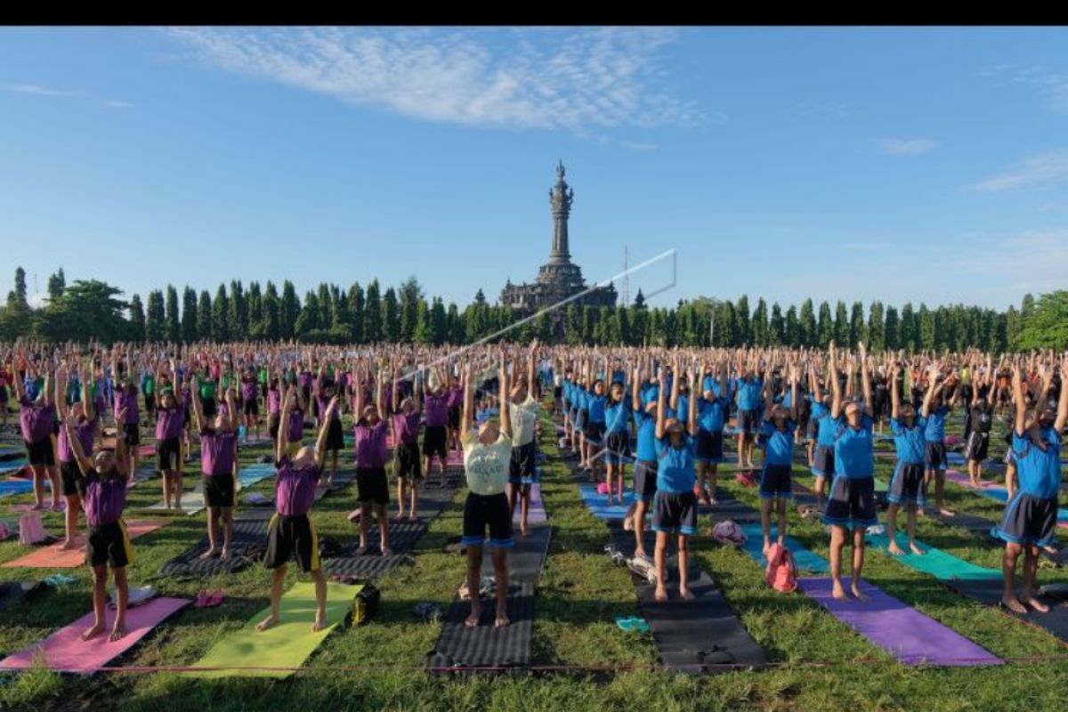 Pelajar melakukan gerakan senam yoga dalam kegiatan Saka Yoga Festival di Denpasar, Bali, Sabtu (30/3/2019). Kegiatan yang sebagian besar diikuti oleh kalangan pelajar tersebut merupakan bagian dari program Gerakan Masyarakat Hidup Sehat dan merupakan rangkaian kegiatan Dharma Shanti Nyepi Nasional 2019 yang digelar pada 5 April mendatang di Bali. ANTARA FOTO/Nyoman Hendra Wibowo/nym