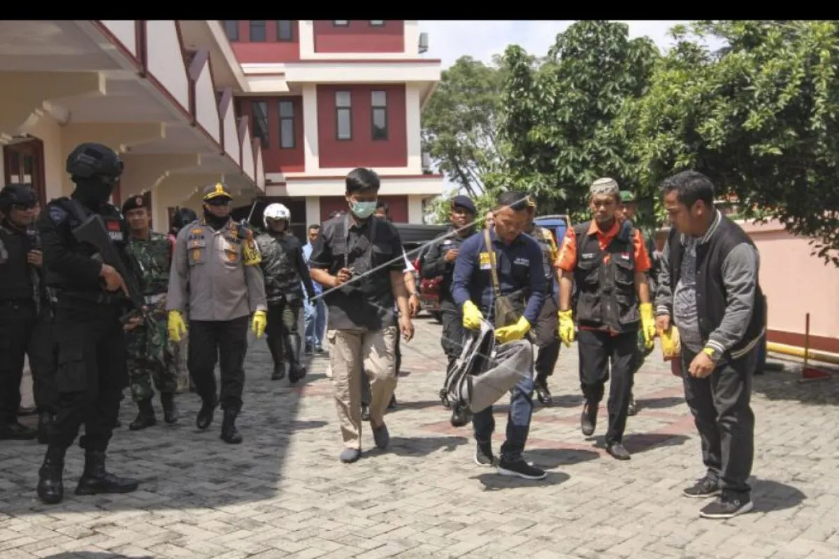 Petugas kepolisian mengamankan sebuah tas yang mencurigakan di dekat Gereja Bethel, Depok, Jawa Barat, Selasa (24/12/2019). Tas mencurigakan yang berisi buku dan dokumen tersebut kini diamankan untuk diperiksa lebih lanjut. ANTARA FOTO/Asprilla Dwi Adha/nym