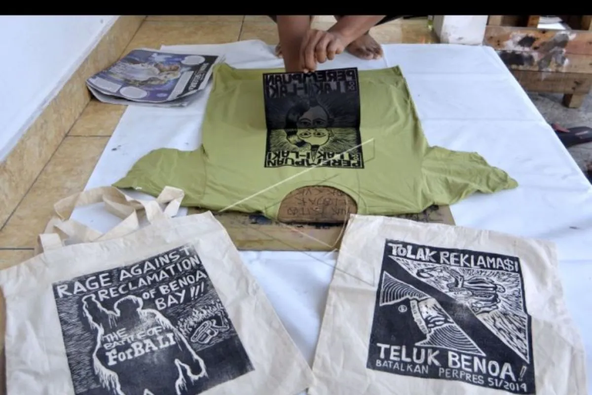 Peserta mengikuti workshop cetak cukil sebagai media kampanye penyelamatan lingkungan di Kantor Wahana Lingkungan Hidup Indonesia (Walhi) Bali, Denpasar, Bali, Rabu (30/9/2020). Kegiatan tersebut dilakukan sebagai ruang belajar bersama masyarakat dalam membuat media kampanye kreatif dengan teknik cetak cukil di kaos dan poster untuk aksi penyelamatan pesisir Bali. ANTARA FOTO/Fikri Yusuf/nym