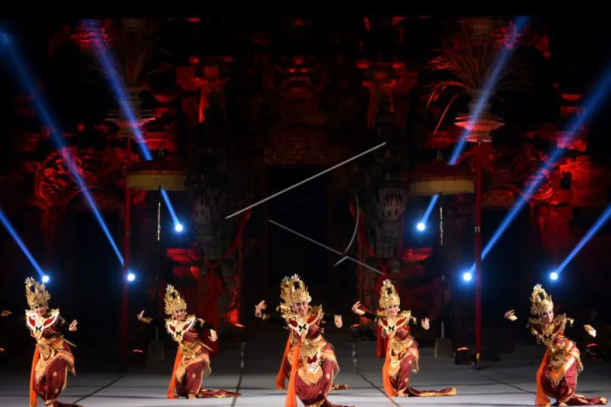 Seniman menampilkan tarian saat Pementasan Pembukaan Pesta Kesenian Bali (PKB) ke-44 tahun 2022 di Taman Budaya Bali, Denpasar, Bali, Minggu (12/6/2022). Pesta Kesenian Bali ke-44 akan diselenggarakan hingga 10 Juli 2022 dengan melibatkan sebanyak 16.150 seniman dan 200 sanggar serta komunitas seni dari sejumlah daerah di Indonesia. ANTARA FOTO/Fikri Yusuf/nym.