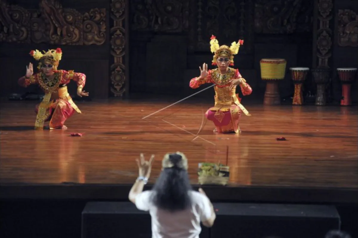 Instruktur memberikan arahan kepada penyandang tunarungu yang menampilkan tari Condong pada pagelaran seni budaya memperingati Hari Disabilitas Internasional di Gedung Dharmanegara Alaya, Denpasar, Bali, Sabtu (3/12/2022). Kegiatan yang diikuti 200 penyandang disabilitas tersebut mengusung tema 'Gempita Ekspresi Disabilitas' untuk membangkitkan semangat, produkvitas, inovatif dan berkolaborasi dalam berkarya. ANTARA FOTO/Nyoman Hendra Wibowo/nym.